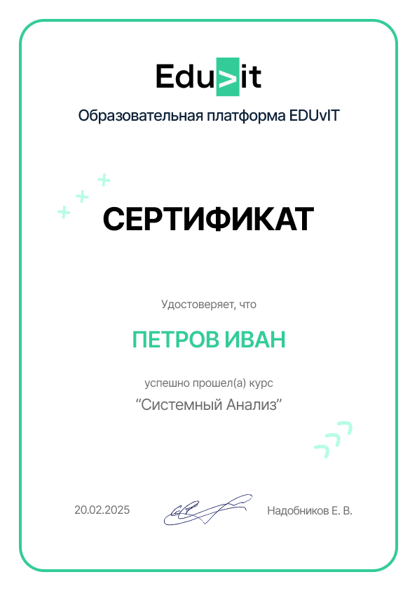 Для получения сертификата необходимо получить положительные оценки по всем домашним заданиям курса. В конце курса вам откроется раздел «Сертификат», откуда можно будет скачать документ.